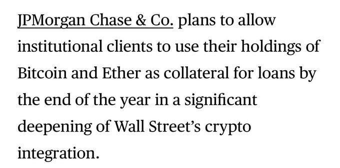 This is the holy grail for financial SOV assets. Once SOV assets are deemed legitimate and can be used as collateral in traditional finance, their adoption grows exponentially. Taking out a loan against an asset is how the world operates. To get a loan on favorable terms, you need good collateral. Bitcoin crushes all other forms of collateral. It’s pristine. The entire financial system will be rebuilt on Bitcoin as collateral, and it hasn’t even started yet. You’re early.