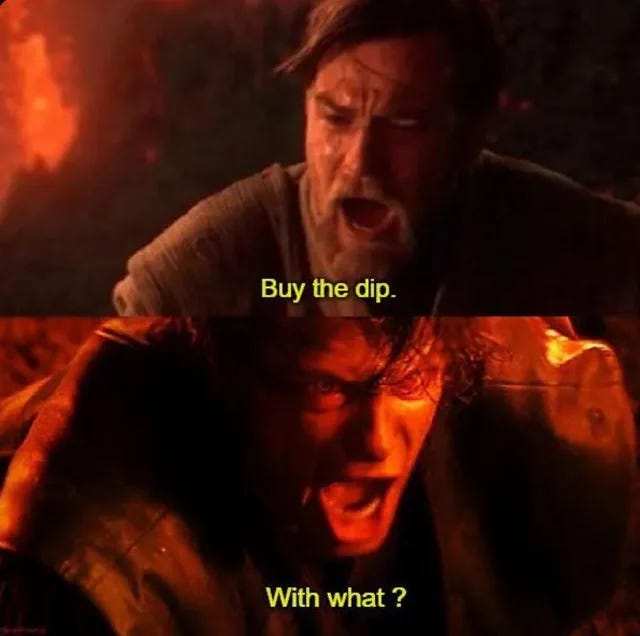 Suck it up and only save money in bitcoin that you don’t need for at least 5 years. That’s the rule. If your time horizon is shorter than that, you’ll sell at the worst time when I’m buying. Like right now, when there is blood in the streets.