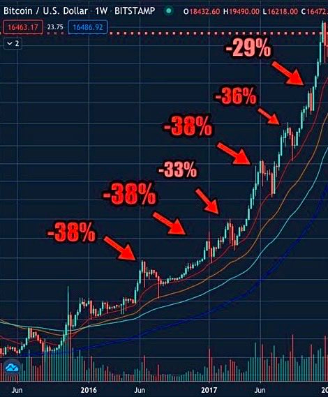 Bitcoin typically “crashes” ~30-50% in BULL markets.